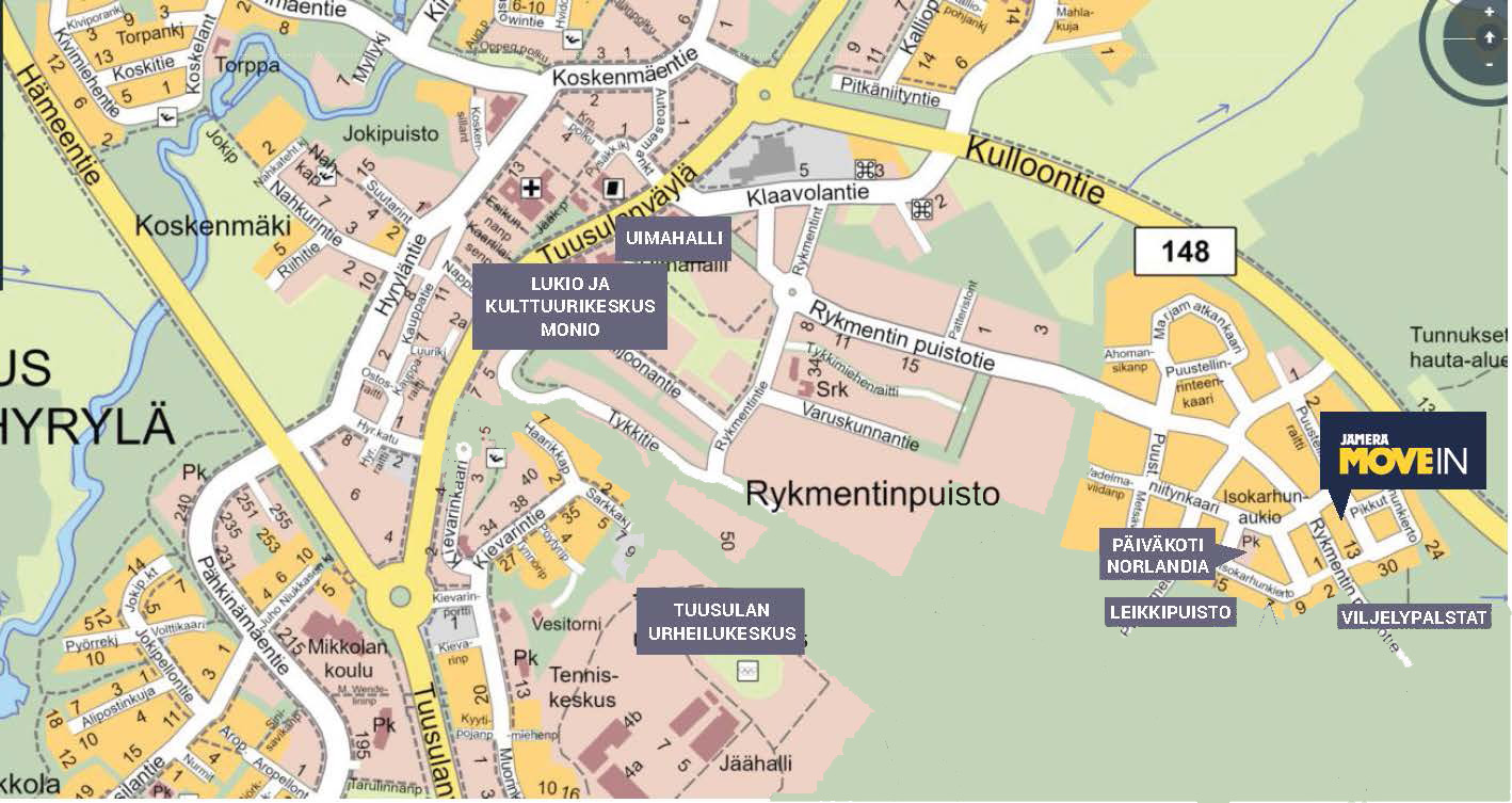 Sijainti on erinomainen: Helsinkiin matkaa vain 35 minuuttia ja lentoasemalle 15 minuuttia. Kehittyvät yritysalueet tuovat alueelle uusia työpaikkoja, mikä vahvistaa Rykmentinpuiston asemaa tulevaisuuden kyläkaupunkina.