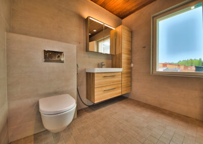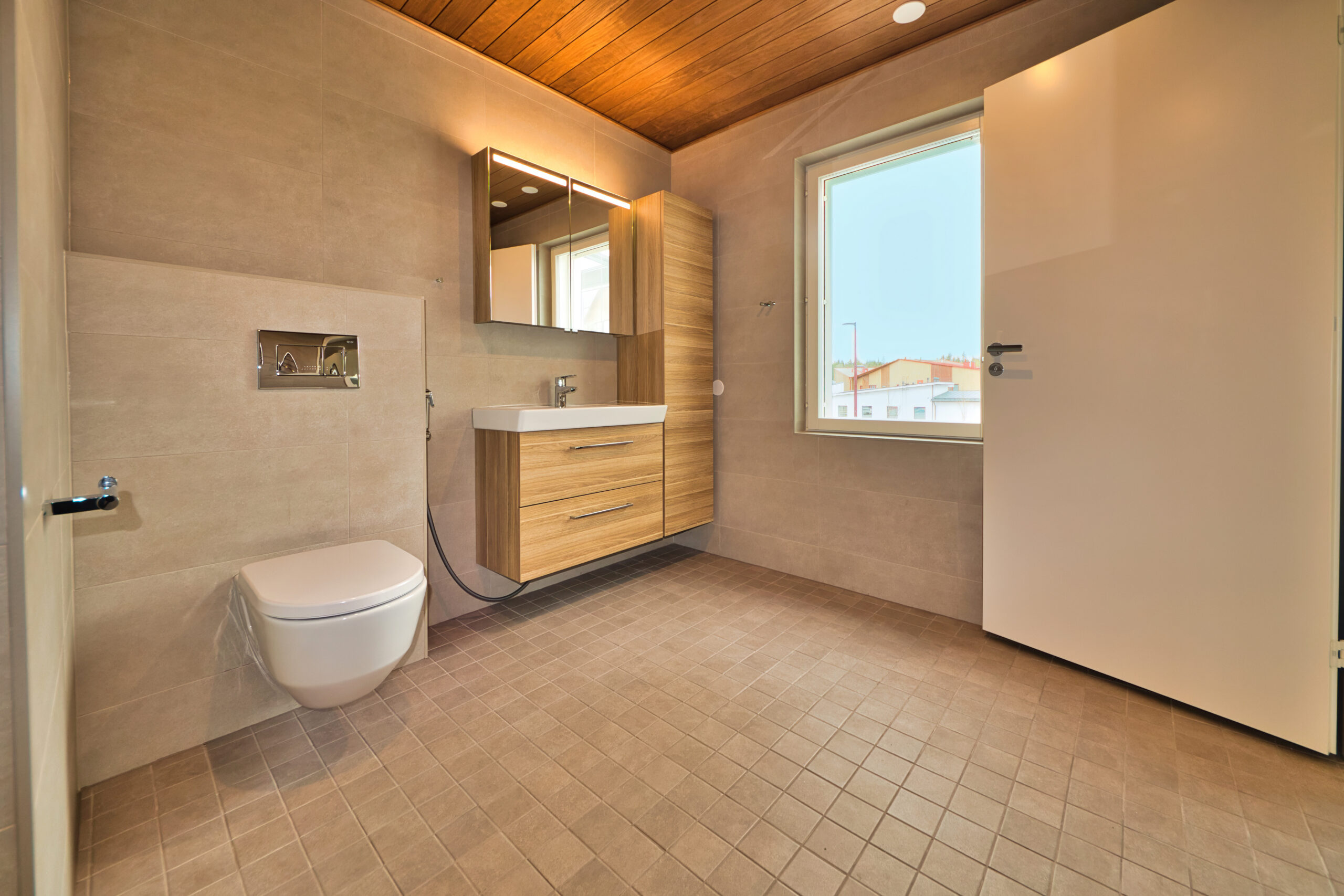 Lämmitysjärjestelmä: Poistoilmalämpöpumppu yhdistettynä vesikiertoiseen lattialämmitykseen. Asunnossa on koneellinen ilman-vaihto lämmöntalteenotolla.